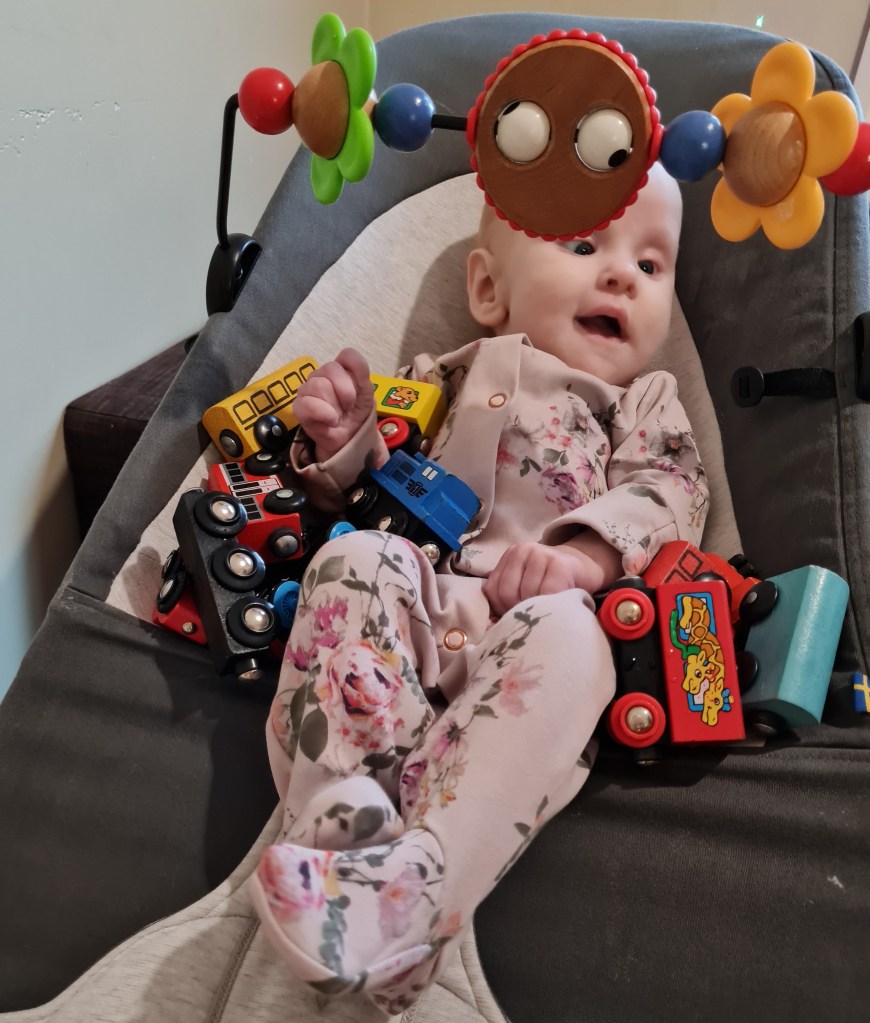 Jaanuaris käisime ka MRT uuringul. Seal oli nii väga häid, kui ka halbu uudiseid. Natukene on muresid väikeajuga, mis enamasti tähendab just tasakaalu ja nägemishäireid. Aga siiski keegi midagi kindlat öelda ei saa, sest aju on tänaseni müstiline asi, mis võib õppida mingeid asju kompenseerima kuidagi teistmoodi. Hea uudisena on suuraju areng täiesti normipärane.
